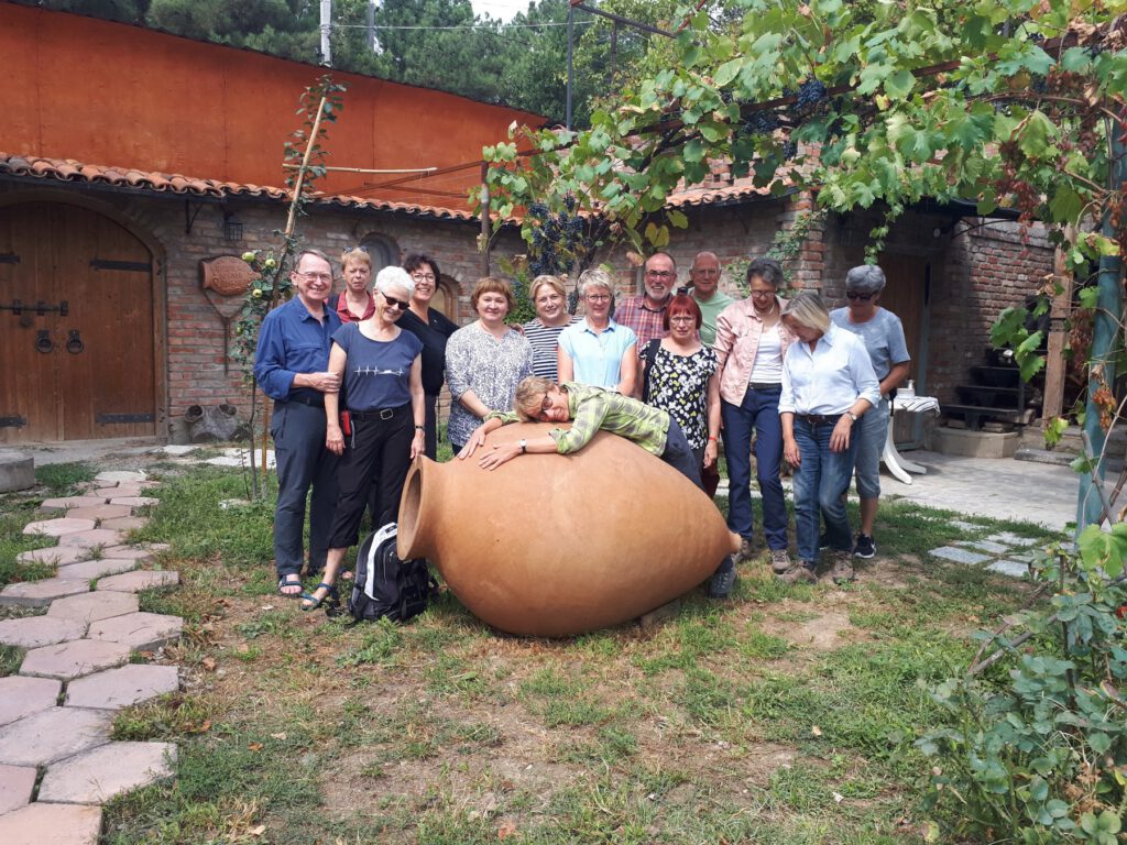 „Als leidenschaftlicher Weinkenner war ‚Wein und Kaukasus’ im Herbst 2024 ein absolutes Highlight. Die Besuche in traditionsreichen Weingütern und die Verkostungen einzigartiger, in Tonamphoren gereifter Weine waren unvergesslich. Unsere Reiseleiter David und Eka haben mit Fachwissen und Herzlichkeit die Kultur des georgischen Weinbaus lebendig gemacht. Malerische Landschaften, köstliche regionale Küche und echte Gastfreundschaft — diese Reise war ein Genuss für alle Sinne. Die Organisation war makellos, die kleine Gruppe sorgte für eine persönliche Atmosphäre. Ich kann diese Reise jedem Weinliebhaber wärmstens empfehlen.”